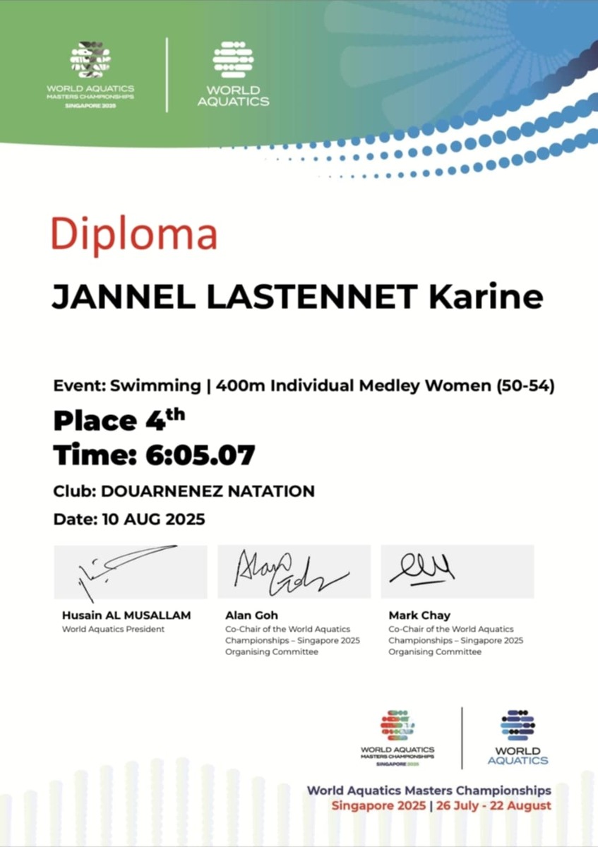 2 nageurs de Douarnenez Natation étaient qualifiés aux Championnats du Monde des Maîtres à Singapour.